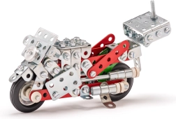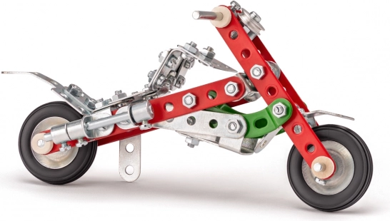 Il set di costruzioni Merkur Motocicletta offre la possibilità di costruire dieci diversi modelli di motociclette e altri veicoli. Questo set aiuta i bambini a sviluppare la loro creatività, il pensiero logico e la motricità fine. Ogni modello offre una nuova esperienza di costruzione e garantisce divertimento illimitato.