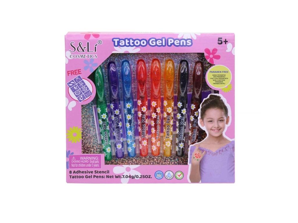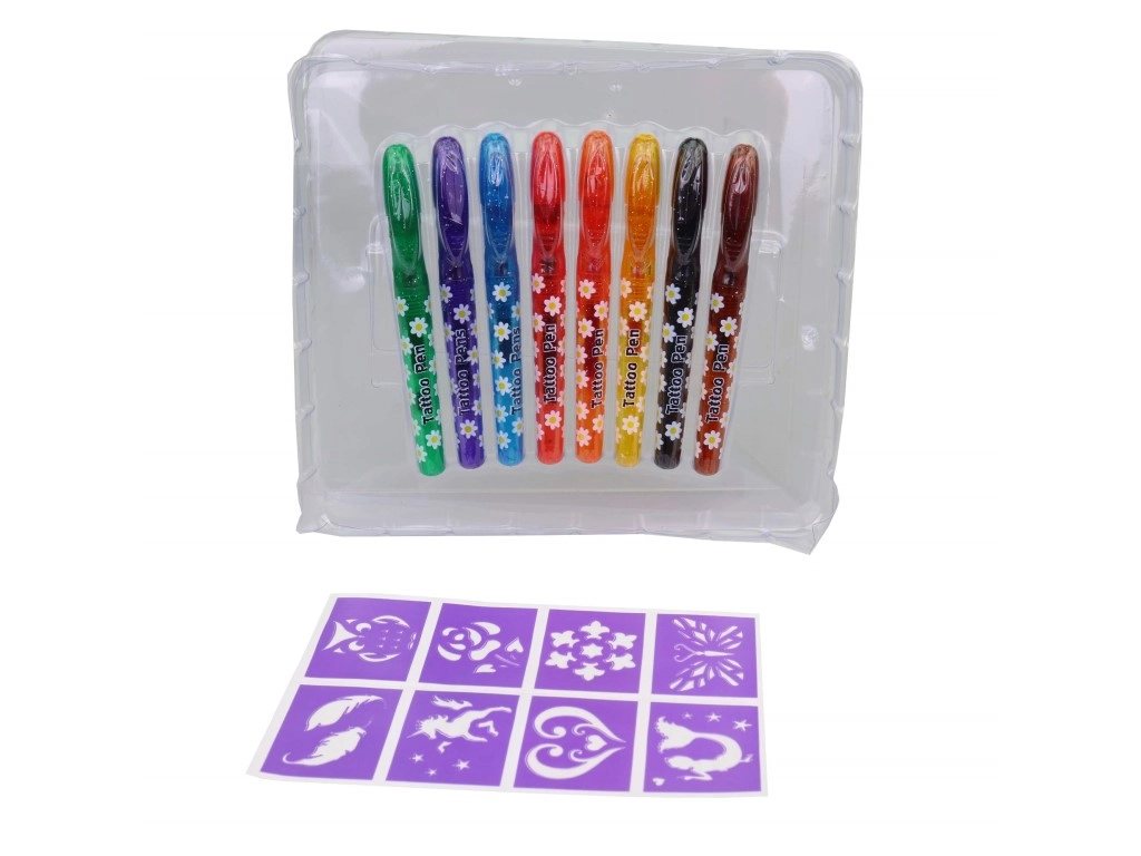 Crea il tuo design per tatuaggi originale con le penne per tatuaggi in 8 colori diversi. Facile da usare come una matita, con un set che include 8 stencil per un look perfetto.