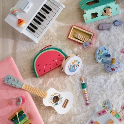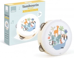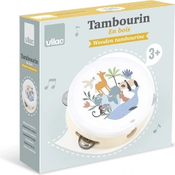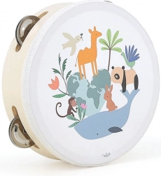 Il tamburello in legno decorato con illustrazioni di Sarah Betz è una scelta ideale per i bambini piccoli che vogliono iniziare a scoprire il mondo della musica. Questo giocattolo, oltre all'esperienza musicale, potenzia lo sviluppo naturale di abilità preziose come la coordinazione occhio-mano, la percezione ritmica e la creatività.