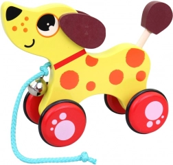Questo adorabile giocattolo da tirare in legno a forma di cane offre non solo varietà di colori, ma anche un elemento interattivo sotto forma di campanellino, che emette un suono delicato quando si muove. Divertimento per i bambini garantito!