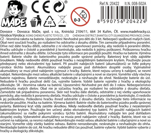 Per un funzionamento completo sono necessarie due batterie AA (non incluse nella confezione), che permettono un gioco interattivo. Il razzo spaziale è confezionato in una scatola compatta ed è una scelta eccellente soprattutto per i maschietti.