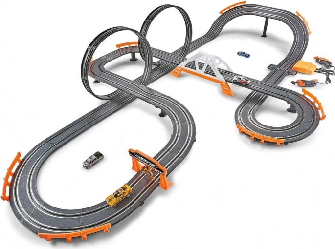 Scopri il mondo eccitante delle piste da corsa con questo fantastico giocattolo, progettato appositamente per i giovani appassionati di gare. Dimensioni della pista sono 175 x 110 x 32 cm, che forniscono spazio sufficiente per gare dinamiche e divertenti. La lunghezza del percorso di 838 cm garantisce un lungo divertimento.