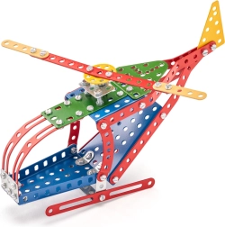 Assembla il modello di elicottero con pezzi metallici disponibili in colori vivaci e facili da connettere.