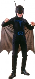 Il costume di carnevale Pipistrello è la scelta ideale per ogni piccolo fan dei supereroi. La tuta completa di mantello con cappuccio e maschera offre un aspetto autentico che impressionerà i bambini e i loro amici. Con l'aggiunta della cintura, il costume diventa perfetto!