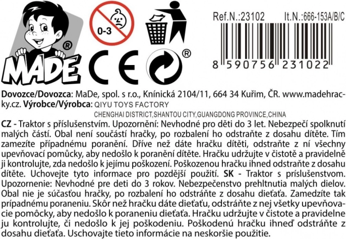 Trattore con rimorchio a inerzia del marchio MaDe è il giocattolo ideale per i ragazzi dai 3 anni. Grazie alla sua robusta costruzione e alle tre diverse varianti cromatiche, offre un grande divertimento e stimola la creatività senza bisogno di batterie.