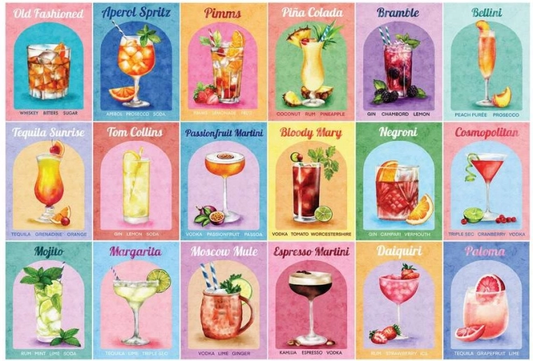 Assembla un puzzle unico con il tema dei Cocktail colorati, offerto dalla rinomata azienda House of Puzzles. Questi puzzle offrono: