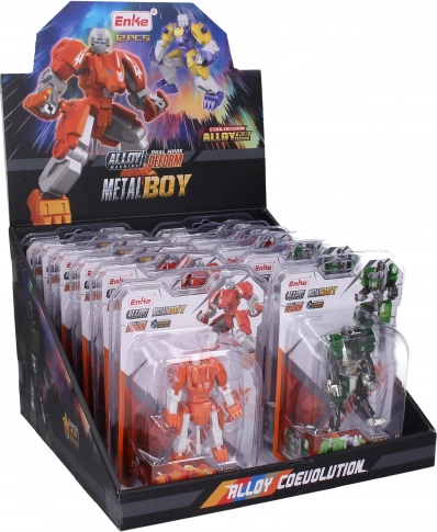 Questo modello di robot in metallo con dimensioni di 4,5x6,5x9 cm è un perfetto esempio di giocattolo moderno, capace di divertire e ispirare con le sue potenzialità. Con box display da 12 pezzi e in quattro varianti attraenti: arancione, blu, verde e giallo, puoi scegliere il tuo design preferito.