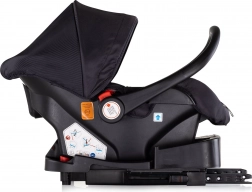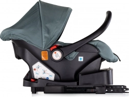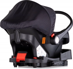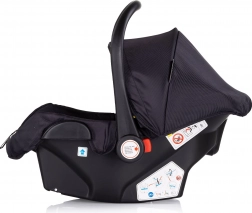 La facile installazione con la cintura a 3 punti del veicolo e l’uso esclusivamente in senso contrario di marcia assicurano un fissaggio corretto e sicuro. La pratica maniglia regolabile consente un trasporto comodo, la base a dondolo calma il bambino fuori dall’auto e la capottina removibile offre ombra e protezione.