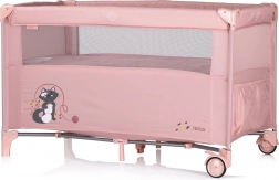 Il lettino è destinato ai neonati e ai bambini con un peso fino a 15 kg. Ha un attraente motivo animale e un lato ribaltabile che offre due livelli di utilizzo. Su un lato c'è una tasca per gli accessori e un ingresso con cerniera per un facile accesso al bambino.