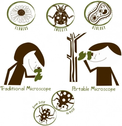 Con il microscopio portatile Navir Explora puoi avere l'esplorazione della natura a portata di mano. Questo microscopio leggero e facile da usare per bambini dai 6 anni offre una vista affascinante sui dettagli che non noteresti ad occhio nudo. Grazie all'ingrandimento 20× fino a 40× e all' è ideale per i piccoli esploratori per osservare comodamente piante, pietre o insetti ovunque nella natura.
