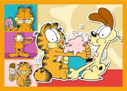 Puzzle progressivo con diversi livelli di difficoltà che includono quattro immagini di Garfield. Ogni puzzle contiene 35, 48, 54 o 70 pezzi, offrendo divertimento per tutti.