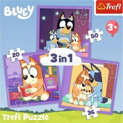 Scopri la magia di assemblare con il puzzle TREFL Incontra Bluey 3v1. Questo puzzle offre: