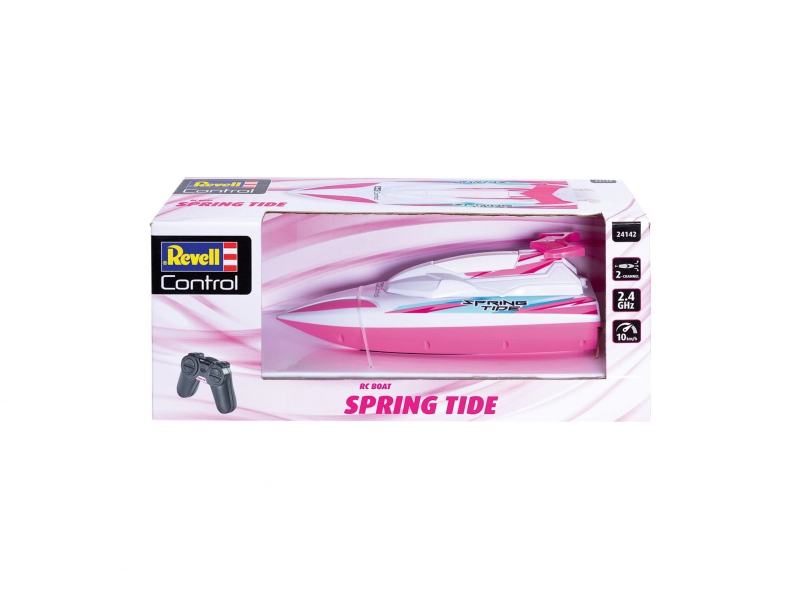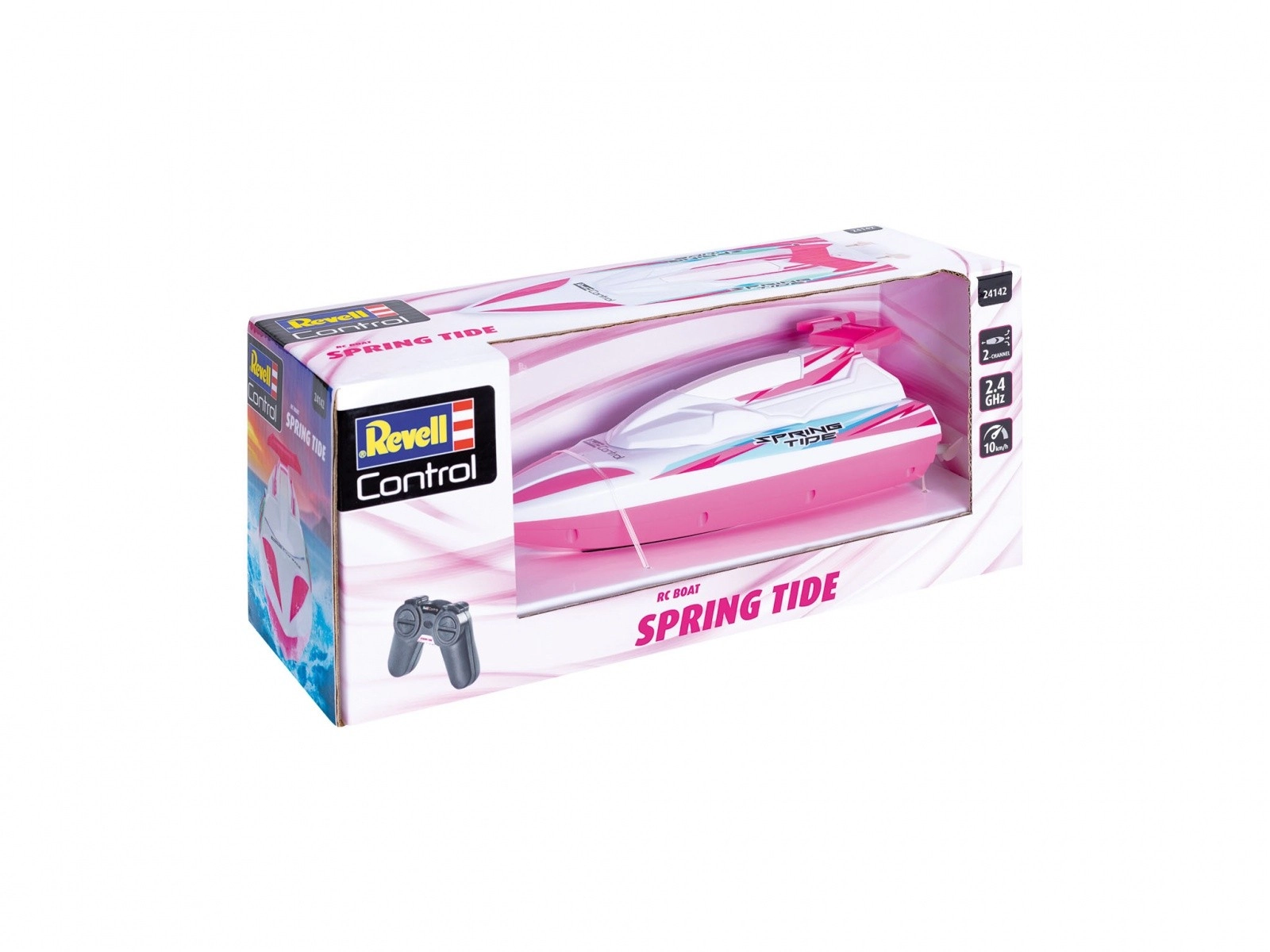 Revell Control RC barca Spring Tide in colore rosa offre divertimento acquatico per i bambini. Questo modello splendidamente colorato misura 235 mm di lunghezza, 75 mm di larghezza e 75 mm di altezza ed è ideale per i giochi dei bambini al mare o in piscina.