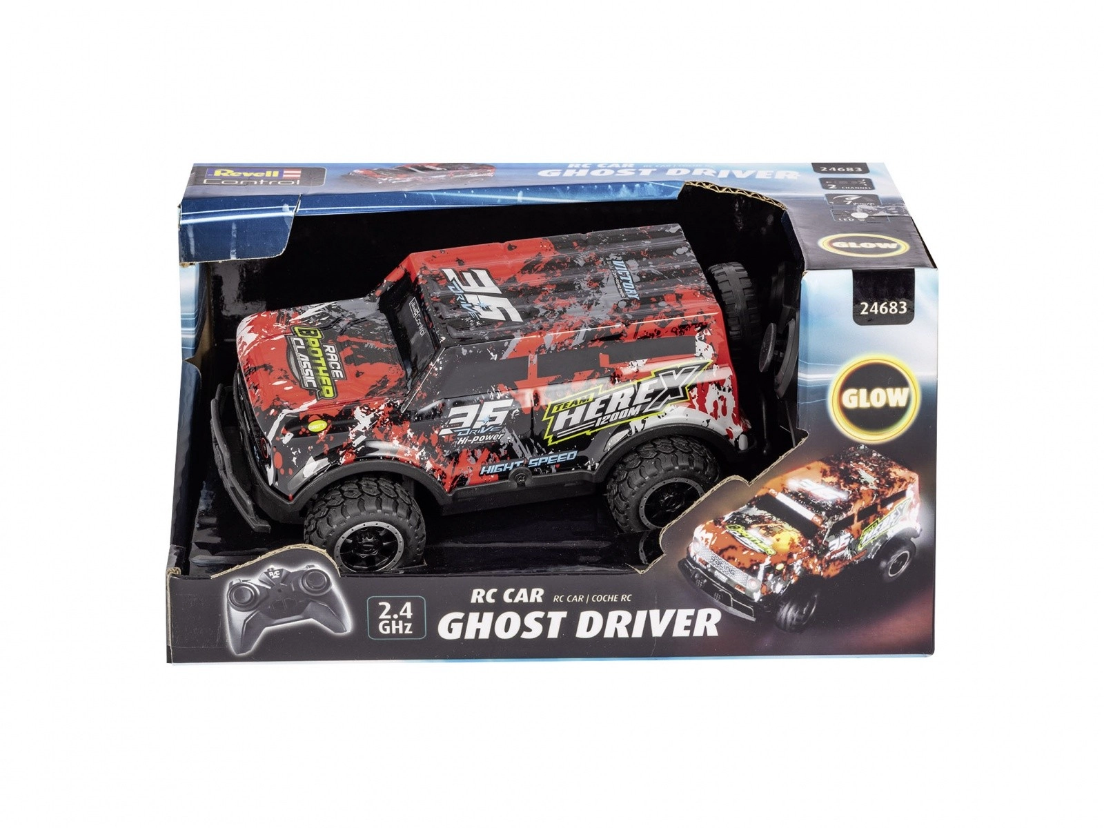 Vivi l'emozione notturna con Revell Control RC Auto Ghost Driver. Pronto per essere aggiunto alla tua collezione o come regalo ideale per appassionati di RC e futuri piloti! Vedere al buio e gareggiare!