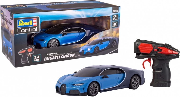 La Bugatti Chiron, intitolata al leggendario pilota Louis Chiron, è un capolavoro di ingegneria che rappresenta perfezione e prestazioni. Con una velocità massima di 420 km/h e un prezzo di diversi milioni di euro, la Bugatti Chiron è un simbolo di lusso e velocità. Revell Control RC Bugatti Chiron porta questa esperienza direttamente a casa tua in una forma più piccola e accessibile.