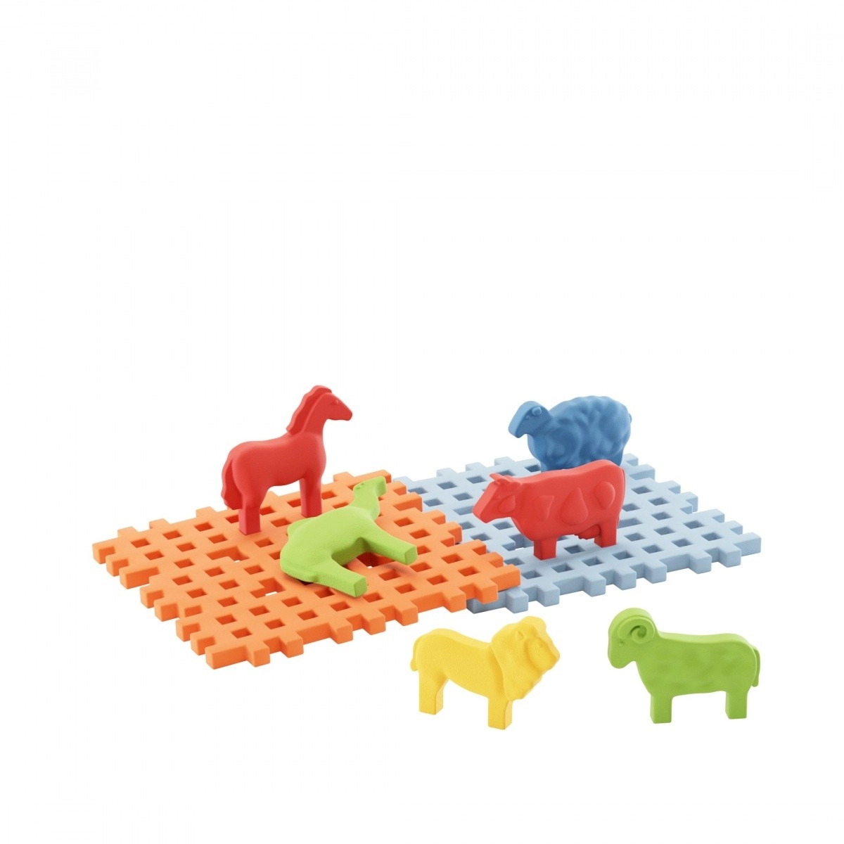 I pezzi sono progettati per mani piccole - sono flessibili, morbidi e piacevoli al tatto, ma al contempo abbastanza resistenti per un gioco intensivo. Grazie al sistema unico di collegamento dei pezzi Mini Waffle, i bambini possono facilmente assemblare i loro animali preferiti su basi e creare scenari unici o integrarli in costruzioni più grandi.
