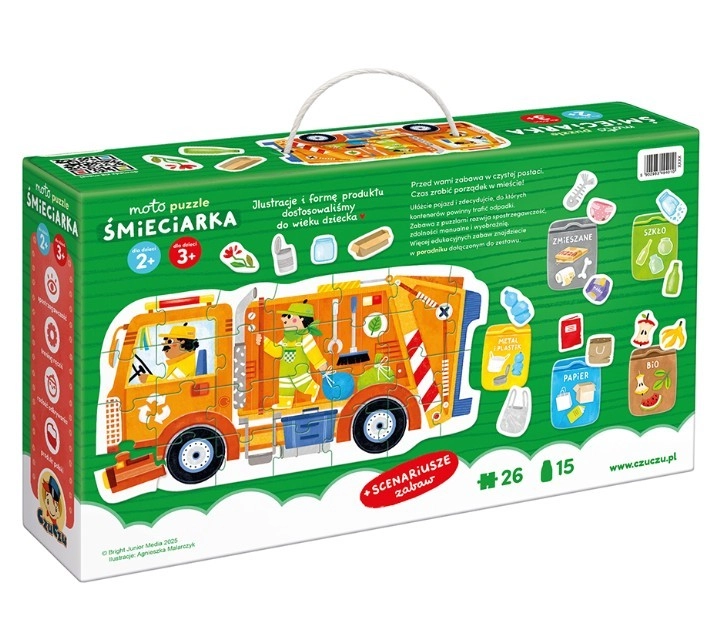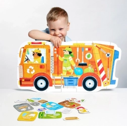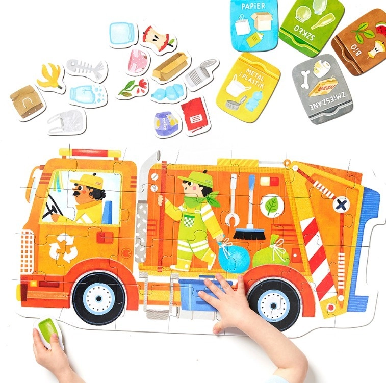 Puzzle Moto - Camion dei rifiuti è un set educativo unico per piccoli esploratori curiosi. Goditi giochi creativi e l'istruzione divertente sui principi della raccolta differenziata e dell'ecologia con questo magnifico set regalo.