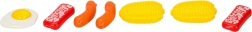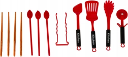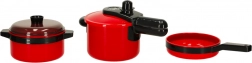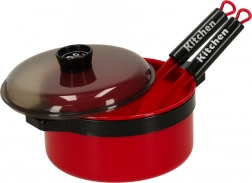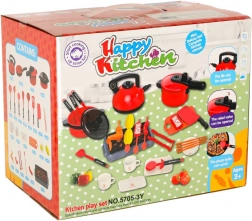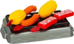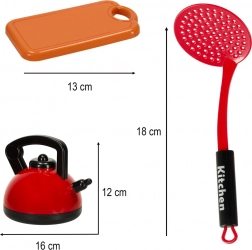 Include giocattoli come grill, padella, bollitore e altri accessori utili necessari ai bambini per giocare a fare i cuochi.