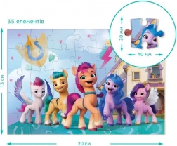 Il divertimento con My Little Pony inizia con questo fantastico puzzle. Goditi l'assemblaggio e scopri una bellissima immagine con i personaggi amati di My Little Pony. Ciascuno dei 35 pezzi è progettato per deliziare i piccoli fan.