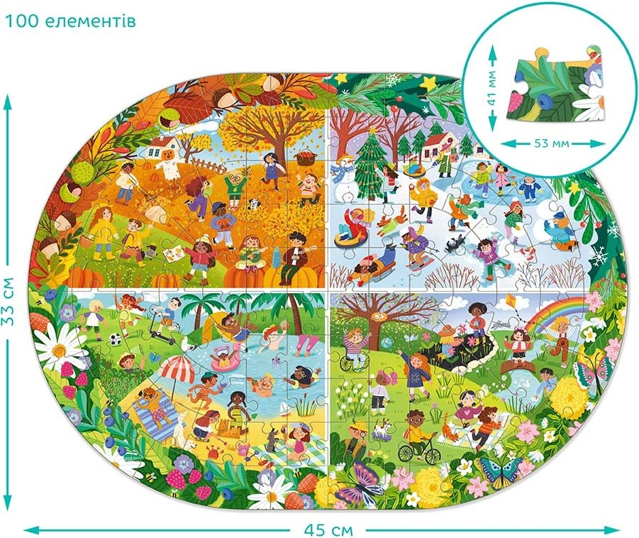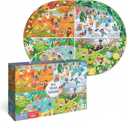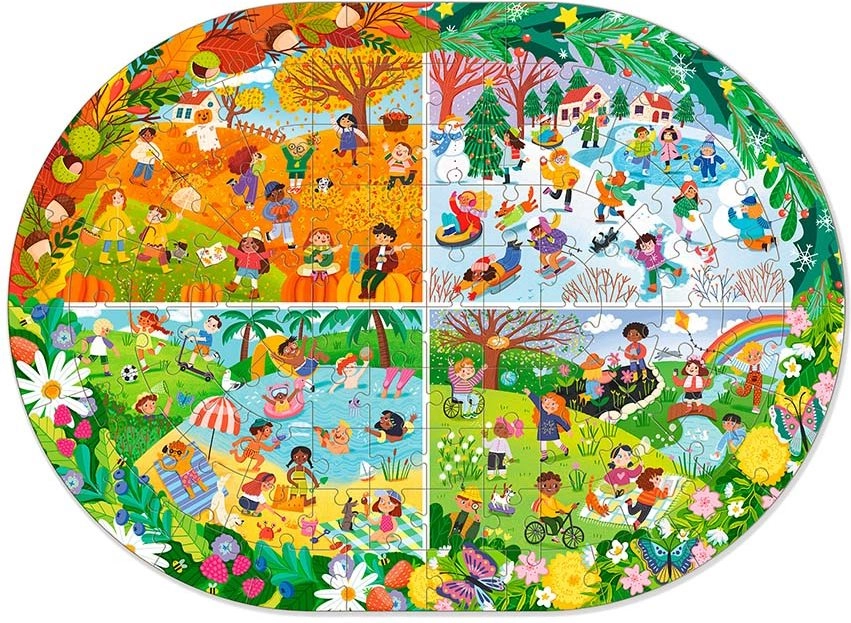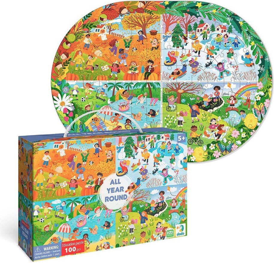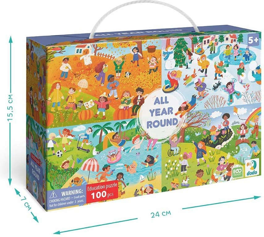 Puzzle DODO – Durante tutto l'anno è il regalo ideale per ogni appassionato di puzzle. Questo puzzle contiene 100 pezzi che rappresentano un'immagine colorata e dettagliata delle diverse stagioni. Il puzzle assemblato ha dimensioni di 45 x 33 cm, perfette per essere incorniciato ed esposto.