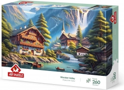 Immergiti nel mondo del villaggio di legno con questo puzzle unico di 260 pezzi. Una volta completato, otterrai un'immagine di un bellissimo villaggio che porterà tranquillità e comfort nella tua casa.