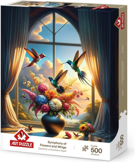 Puzzle Sinfonia di ali e fiori con 500 pezzi offre un'immagine colorata e dettagliata con un tema naturale che illuminerà la tua mente e accorcerà i momenti di noia.
