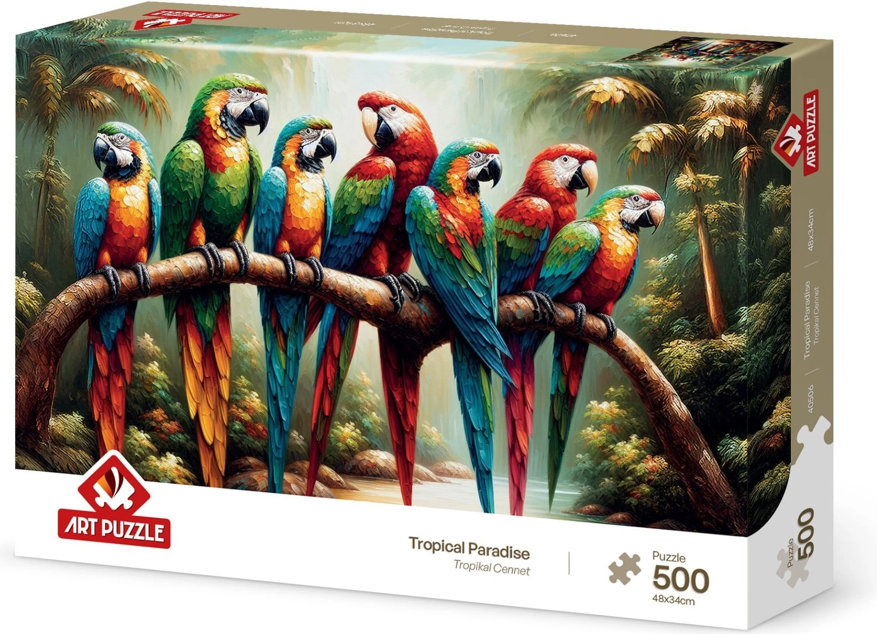 Goditi il relax mentre componi il puzzle con il tema del Paradiso Tropicale. Questo puzzle è composto da 500 pezzi ed è ideale per ogni amante dell'esotico.