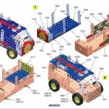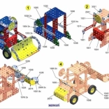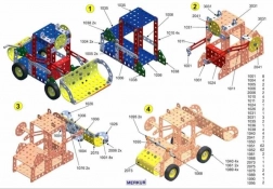 Il set comprende un manuale che ti guiderà passo passo nella costruzione di 30 modelli, come sega a nastro, gru, camion o vagone. Nelle prime pagine troverai consigli di base sull'unione dei pezzi, l'uso di controdadi e altre tecniche necessarie per la modellazione.