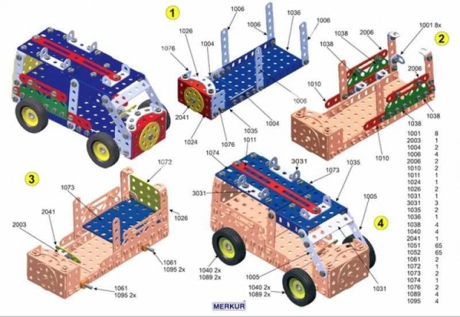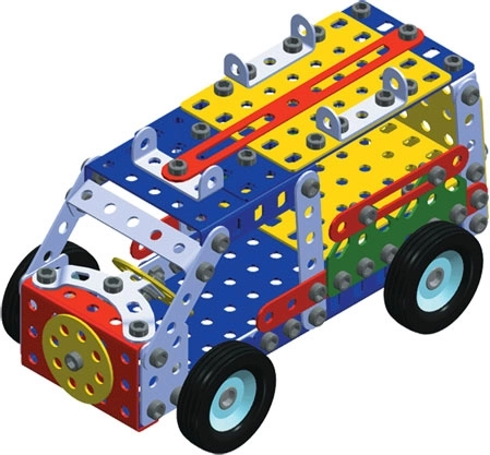 Presentiamo il set di costruzioni MERKUR 3, ideale per i piccoli ingegneri e i loro genitori. Questo classico set di costruzioni a strato singolo include 273 pezzi tra cui nastri, archi, angolari, ruote e pneumatici. Nella confezione non mancano le viti e i dadi necessari per assemblare un'ampia gamma di modelli.