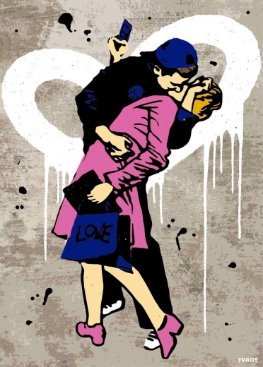 - Motivo romantico di una coppia che si bacia che piacerà a tutti gli amanti dell'arte