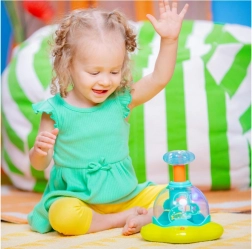 L'attrazione principale sono le luci illuminanti, che attirano l'attenzione e incoraggiano i bambini a giocare attivamente. La combinazione di effetti luminosi colorati e movimento dinamico sviluppa la coordinazione visiva e motoria e stimola i sensi del bambino.