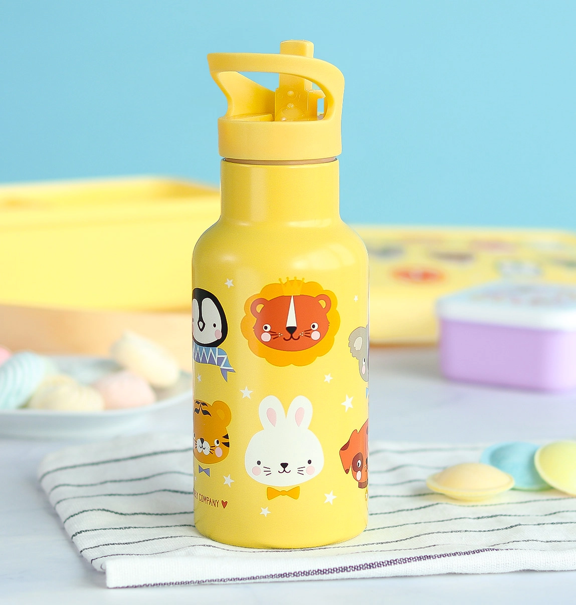 La bottiglia in acciaio inox di A Little Lovely Company si distingue per la sua allegra stampa che i bambini adoreranno immediatamente. Grazie alla costruzione a doppia parete, aiuta a mantenere la bevanda alla temperatura ideale ed è dotata di un beccuccio pratico con cannuccia.