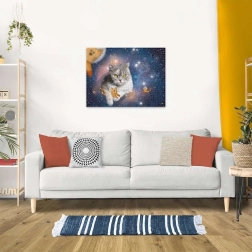 Entra in un mondo di calma e concentrazione con il puzzle 'Gatto nello spazio'. Non solo passerai ore in un'attività piacevolmente concentrata, ma una volta terminato avrai un'immagine straordinaria che ammira creatività e immaginazione.