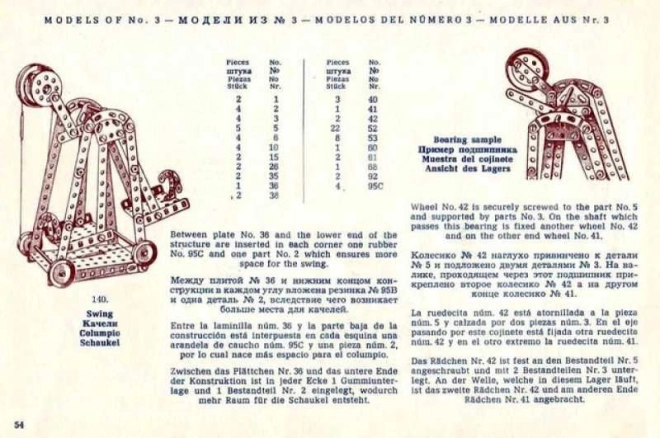La confezione include un ampio manuale illustrato di 94 pagine in stile anni ’30, concepito per i set MERKUR Classic C03, C04 e C05. Potrete assemblare fino a 141 modelli diversi – dai veicoli e macchine ai meccanismi tecnici. Un regalo ideale per bambini creativi dagli 8 anni in su, appassionati di tecnica e amanti del design retrò.