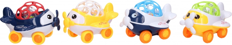 Giocattolo a forma di aereo con ruote libere, perfetto per il divertimento e lo sviluppo dei bambini. Questi sonagli sono disponibili in quattro varianti di colore: blu, verde, bianco e rosso. Grazie alle dimensioni di 11x11x8 cm, è facile per i bambini afferrarlo e maneggiarlo.