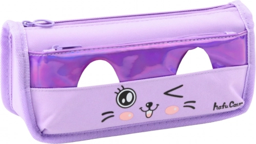 Astuccio viola con motivo di gatto - a due scomparti