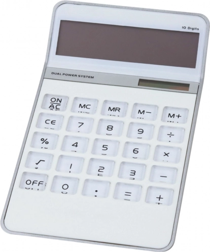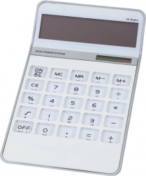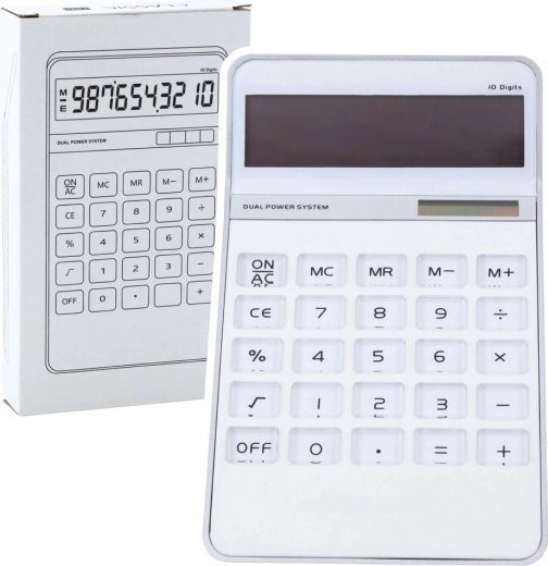 Moderna calcolatrice da ufficio in un elegante involucro bianco che combina estetica e funzionalità. Il suo design minimalista e i tasti chiaramente contrassegnati la rendono perfetta su ogni scrivania - in ufficio, a casa o negli ambienti educativi.