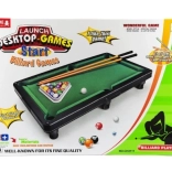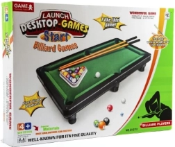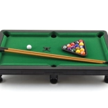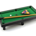 - 2× stecca, set di palle, 1× triangolo, 1× gesso, mini tavolo