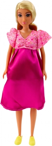- Capelli biondi e trucco delicato donano alla bambola un aspetto affascinante.