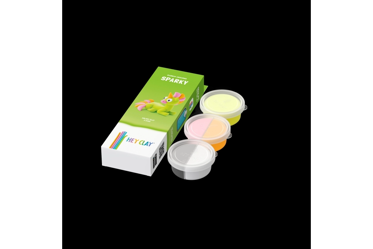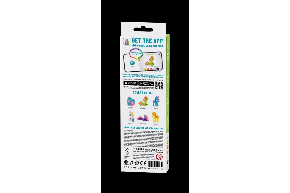 Scopri la gioia del creare con la pasta creativa HEY CLAY Rainbow Unicorns. Grazie all’app gratuita su smartphone o tablet, i bambini possono seguire istruzioni chiare e realizzare il dolce unicorno Sparky. I colori nella confezione corrispondono al personaggio e rimane anche un po’ di pasta per idee personali.