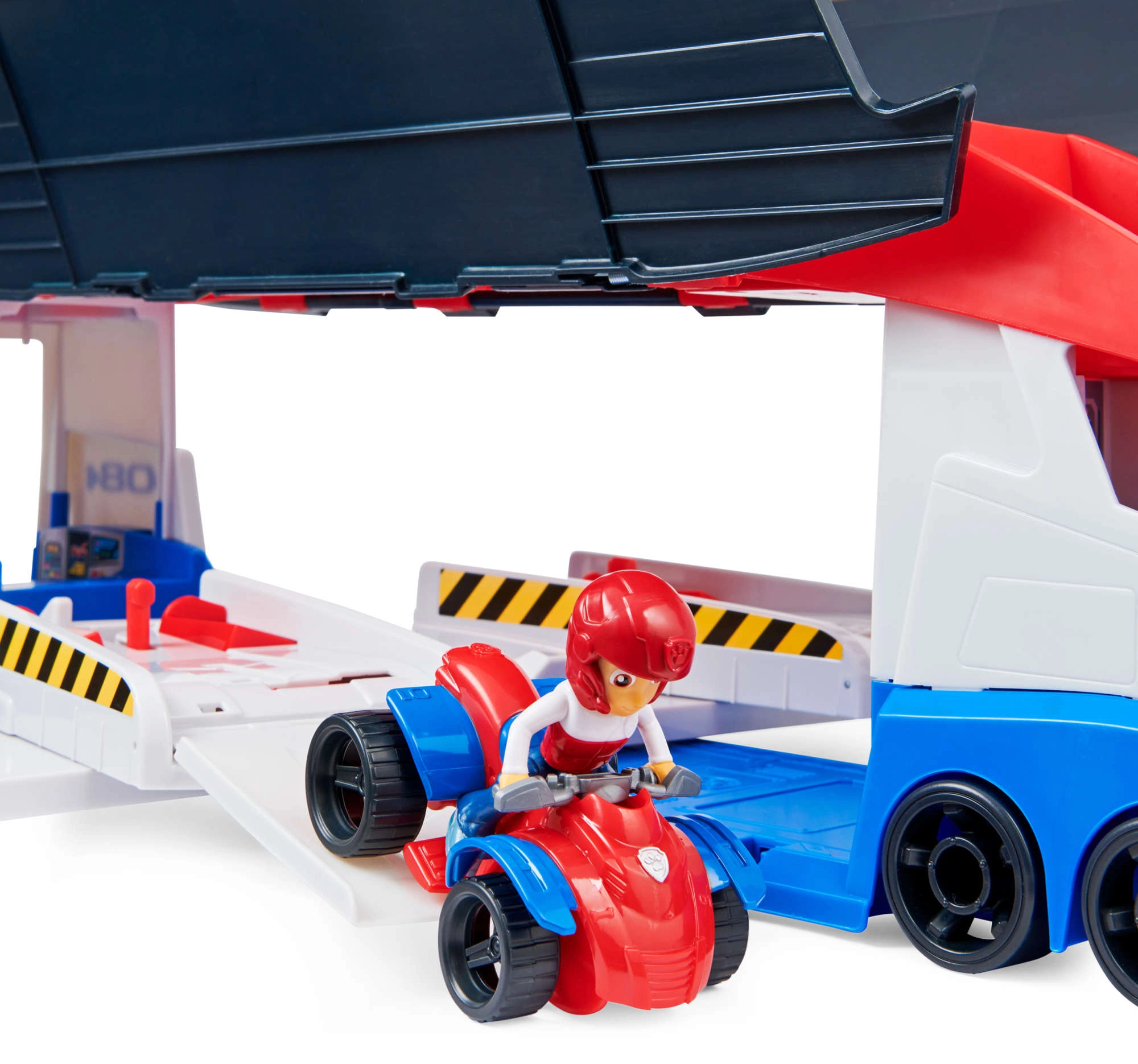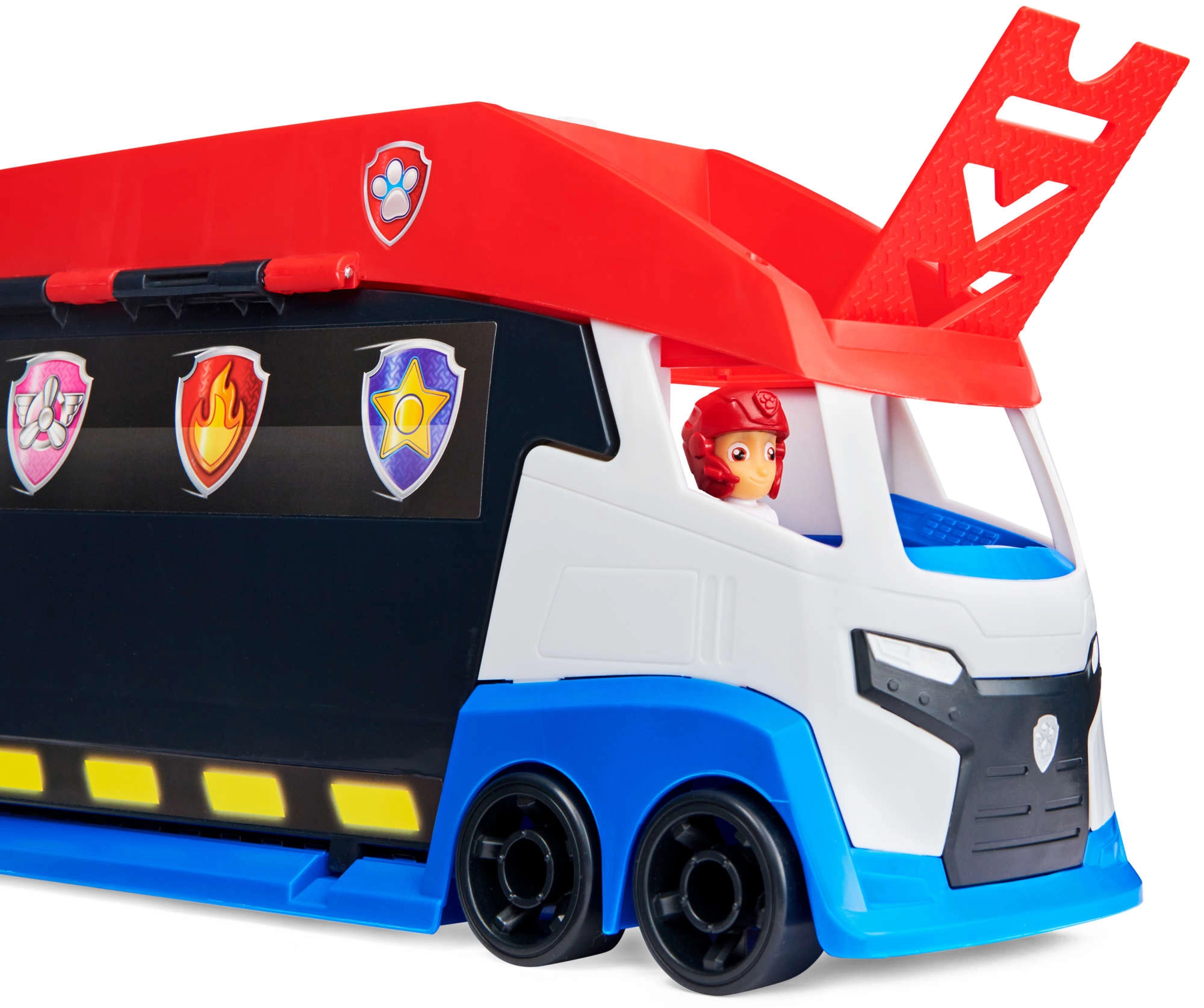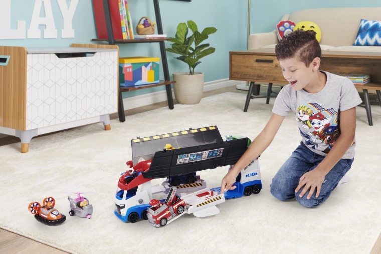 L’enorme trasportatore ispirato alla serie PAW PATROL farà felici tutti i piccoli soccorritori. Grazie ai pannelli laterali ribaltabili e alle rampe, il camion si trasforma in un’officina mobile e in un quartier generale. Premendo il pulsante con l’impronta si attivano realistici suoni di motore, clacson e retromarcia, che rendono il gioco ancora più coinvolgente.