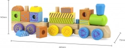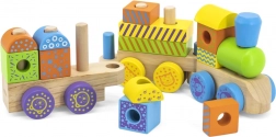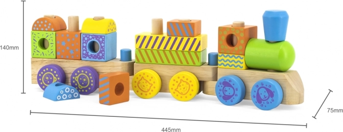 Questo trenino in legno di qualità è composto da più vagoncini con pioli su cui i bambini impilano vivaci blocchi geometrici. Combina impilare, trainare e costruire, stimolando l’immaginazione e allenando la coordinazione occhio–mano. Il legno accuratamente lavorato e i colori atossici assicurano sicurezza e resistenza nel gioco quotidiano.