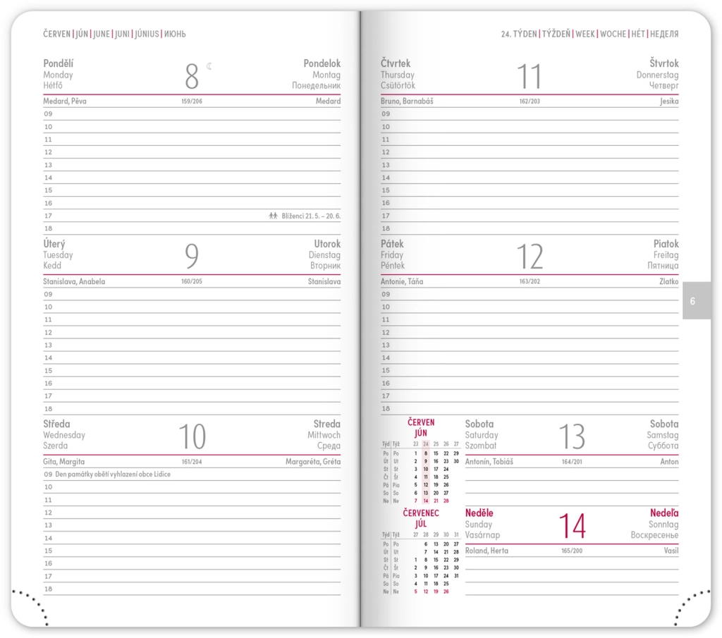 - Programma settimanale con calendario ceco e slovacco, completato da inglese, tedesco, ungherese e russo