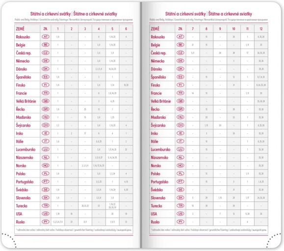 - Piano settimanale con calendario ceco-slovacco e supporto per inglese, tedesco, ungherese e russo.