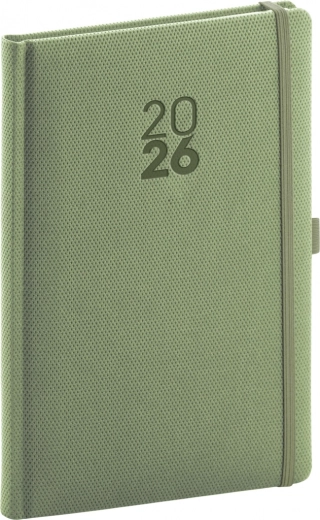 Elegante Agenda settimanale Diamante 2026 in colore oliva con struttura fine che ricorda il taglio di un diamante, ideale per la pianificazione personale e lavorativa.