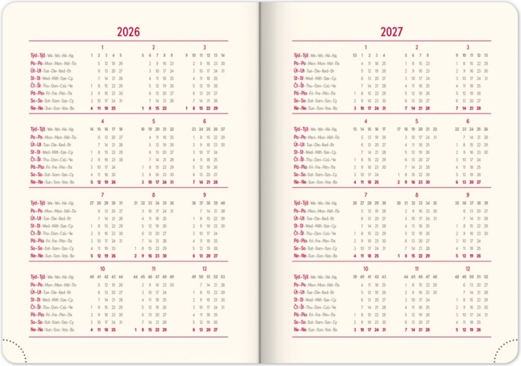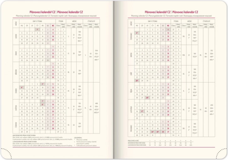 - Pianificazione settimanale con calendario ceco-slovacco e altre lingue.