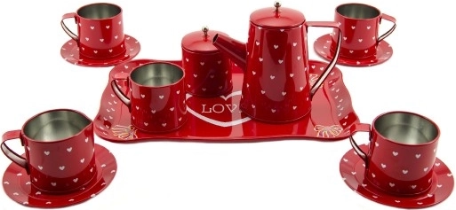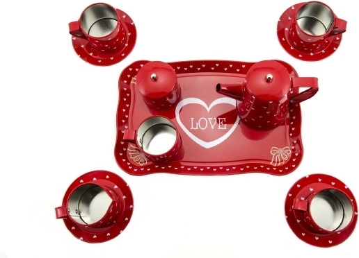 Vi presentiamo il set di stoviglie da tè in latta rossa, che conquisterà ogni amante del tè. Questo set da 14 pezzi è progettato tenendo conto della sicurezza e divertimento dei bambini dai 3 anni in su. È realizzato in latta, che conferisce durata e resistenza alla corrosione.