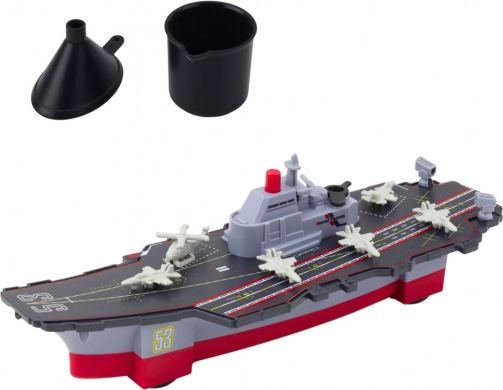 La nave militare con funzione di flusso d'acqua è ideale per giocare a casa. I bambini adoreranno la propulsione meccanica, che consente un movimento fluido. La particolarità di questo giocattolo è l'effetto del flusso d'acqua, che si attiva una volta riempito il serbatoio d'acqua integrato.