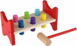 Il martellino in legno, leggero e maneggevole, si adatta alla mano dei bambini e aiuta a sviluppare in sicurezza la coordinazione occhio–mano e la forza della presa.