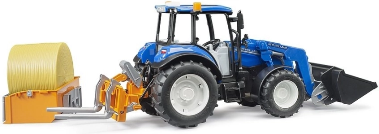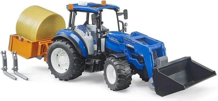 Il trattore BRUDER NEW HOLLAND T5.120 è un versatile aiutante agricolo con lavorazione precisa e struttura resistente. Grazie al caricatore frontale funzionante, alle forche aggiuntive e al cassone, i bambini caricano, trasportano e scaricano facilmente balle di fieno e altri materiali. Gli assi ammortizzati e l’asse anteriore fuoristrada garantiscono una marcia stabile anche fuori dalle superfici lisce.